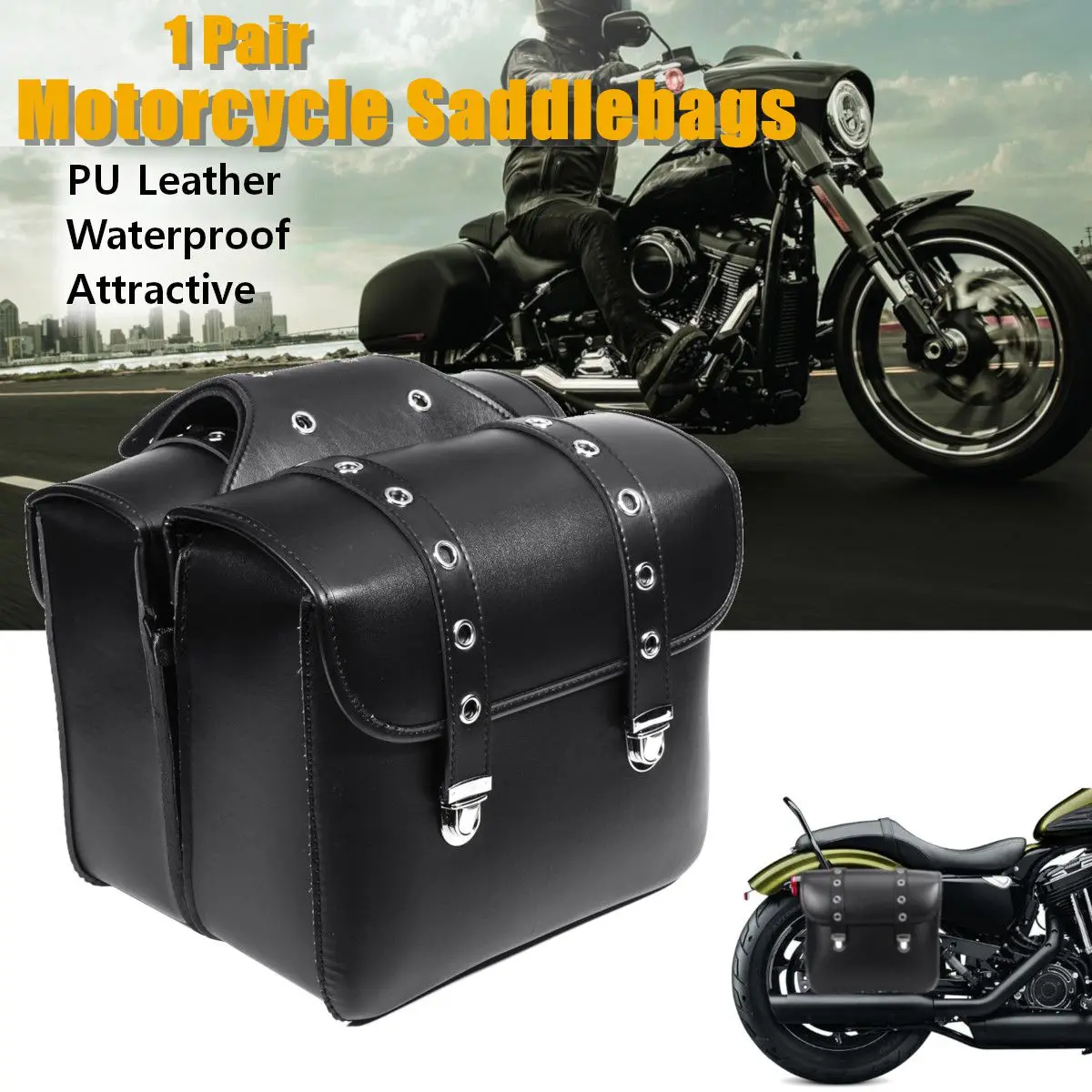 Discount Pair Universal Motorcycle Leather Side Saddlebag Luggage Storage Bag Tool Pouch for Harley